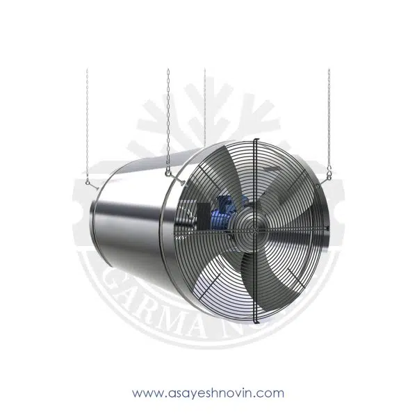 ویژگیهای مثبت این فن شامل خنککنندگی، منظمکنندگی دما و رطوبت است. این دستگاه در فضاهای بزرگ و سالنها نصب میشود تا دما و رطوبت بهینه شده و انتقال گرما بهبود یابد، این فن دارای فریمهای مقاوم در دو سر دستگاه و توریهای محافظ بر روی بدنه و الکتروموتور آن است. نصب این فنها به صورت آویز در ارتفاعات بالا زیر سقف سالن انجام میشود.